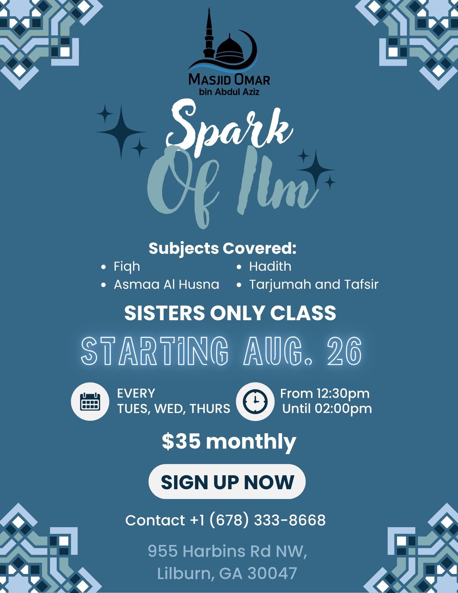 Questions? Contact Sister Ashwaq at 678-668-4251 or email at info@masjidomar.org